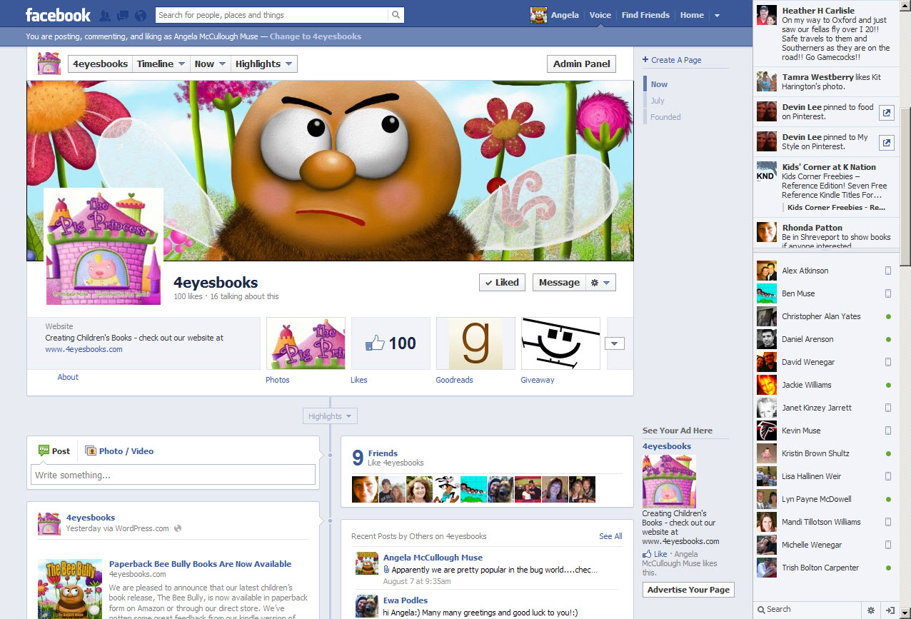 We are thrilled to announce that 4EYESBOOKS has reached 100 likes on Facebook. This means some people like us. They really like us! We will continue putting pen to paper and creating colorful children’s books for our readers to enjoy. What a great way to end a Friday. If you haven’t checked out any of our books yet you can find them on Amazon.com. Don’t forget to leave us a review so we know how we are doing!
